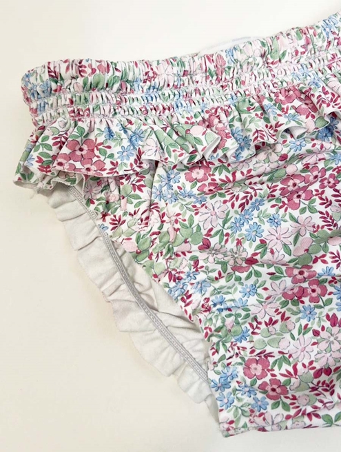 Baby bloomer in lycra with pink and green flowers