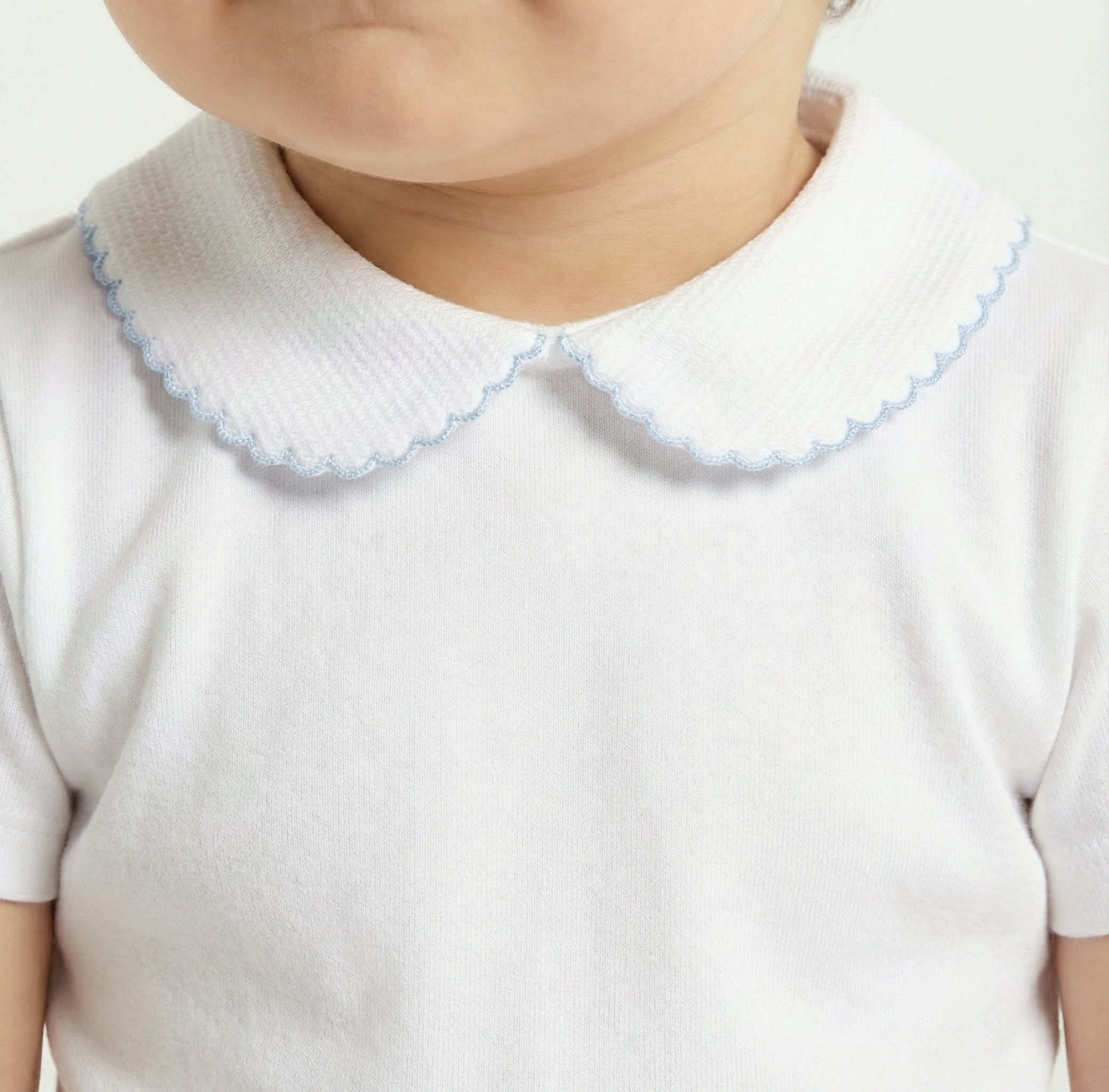 Short sleeve bodysuit with piqué Peter Pan collar with white stitch