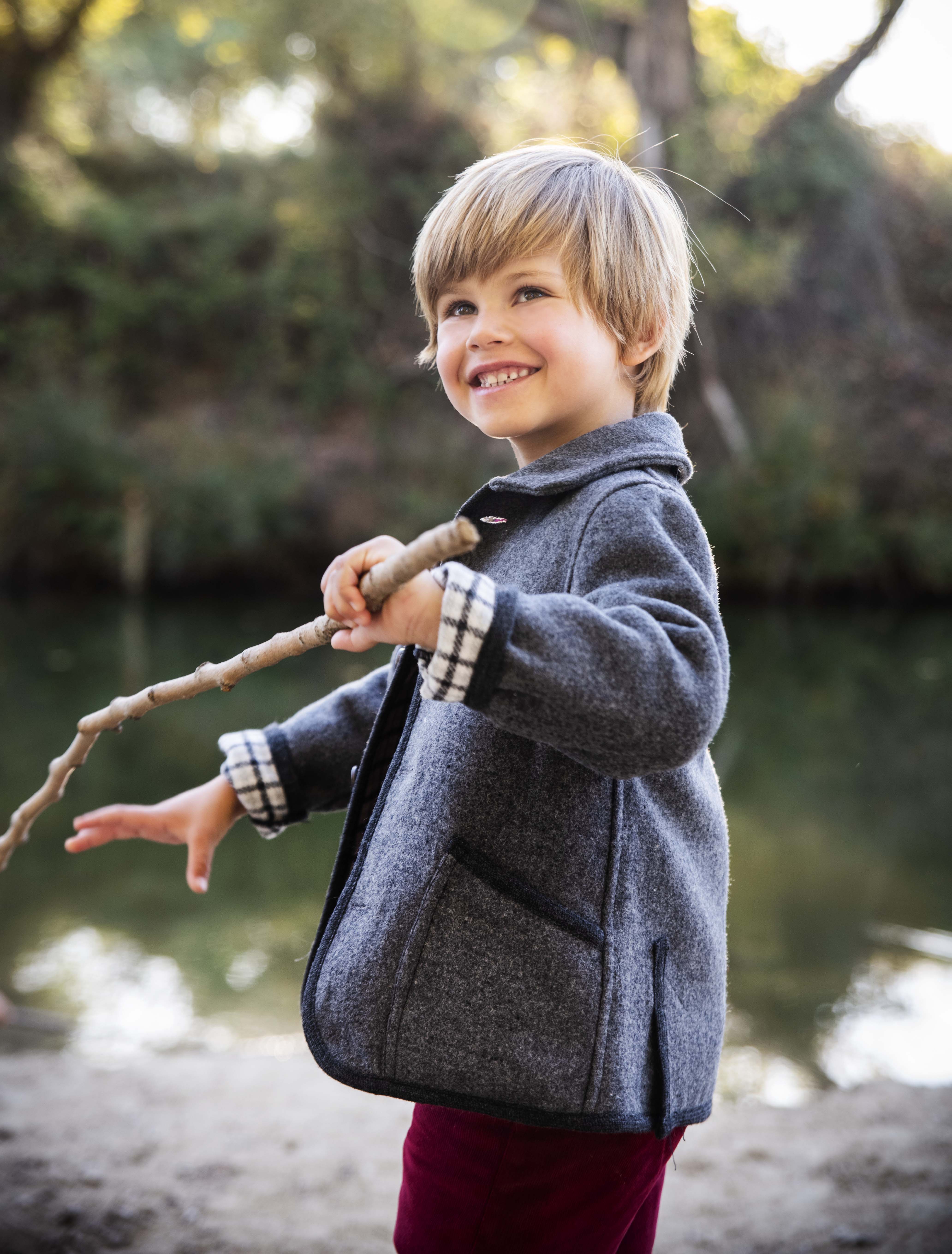 Grey austrian coat, corduroy bermuda in burgundy and ecrue shirt
