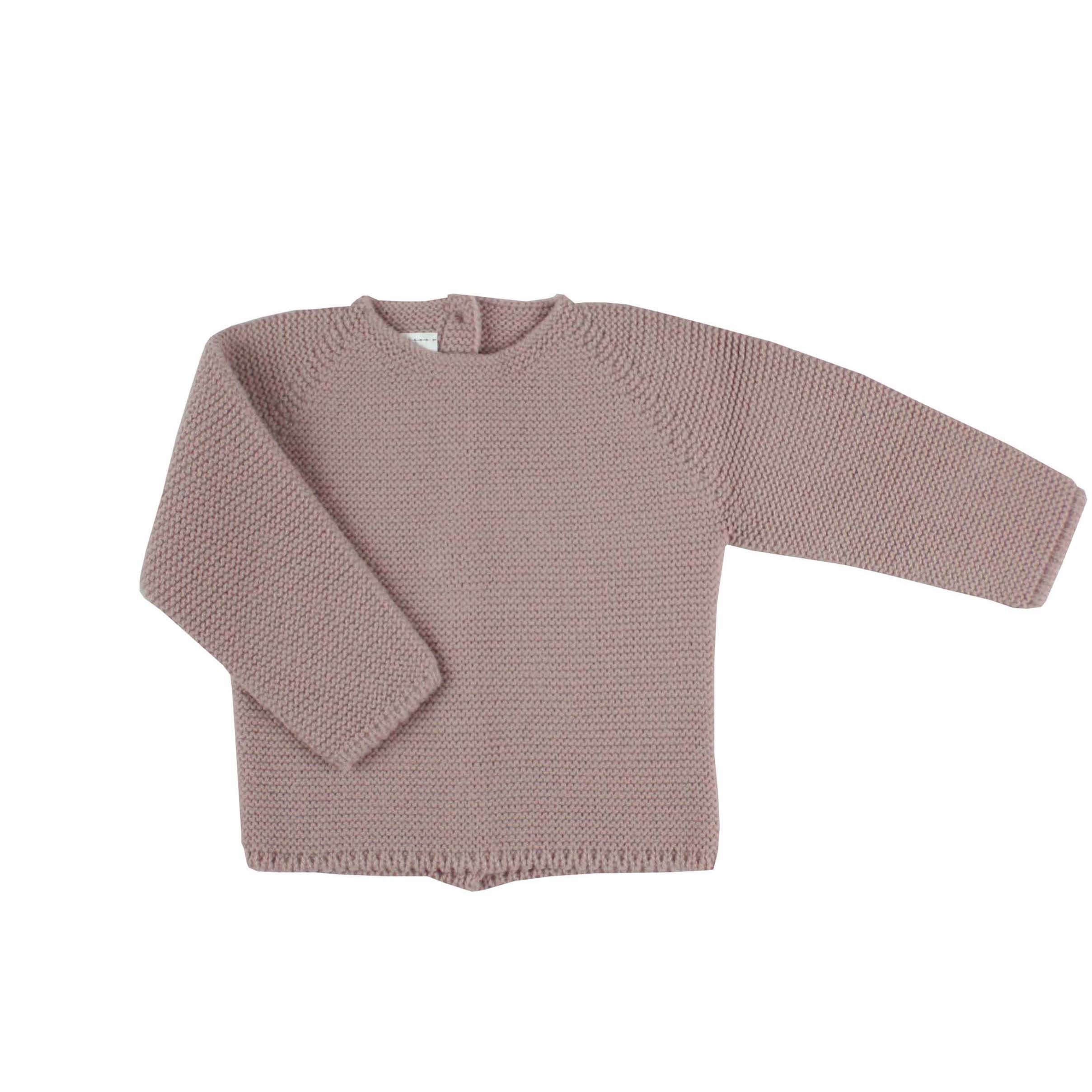 Pastel pink thick knit baby sweater. Buttoned on back. Made in Spain by m&h