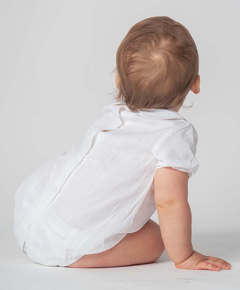 Bodysuit -blouse white linen cotton short sleeves. peter pan collar.