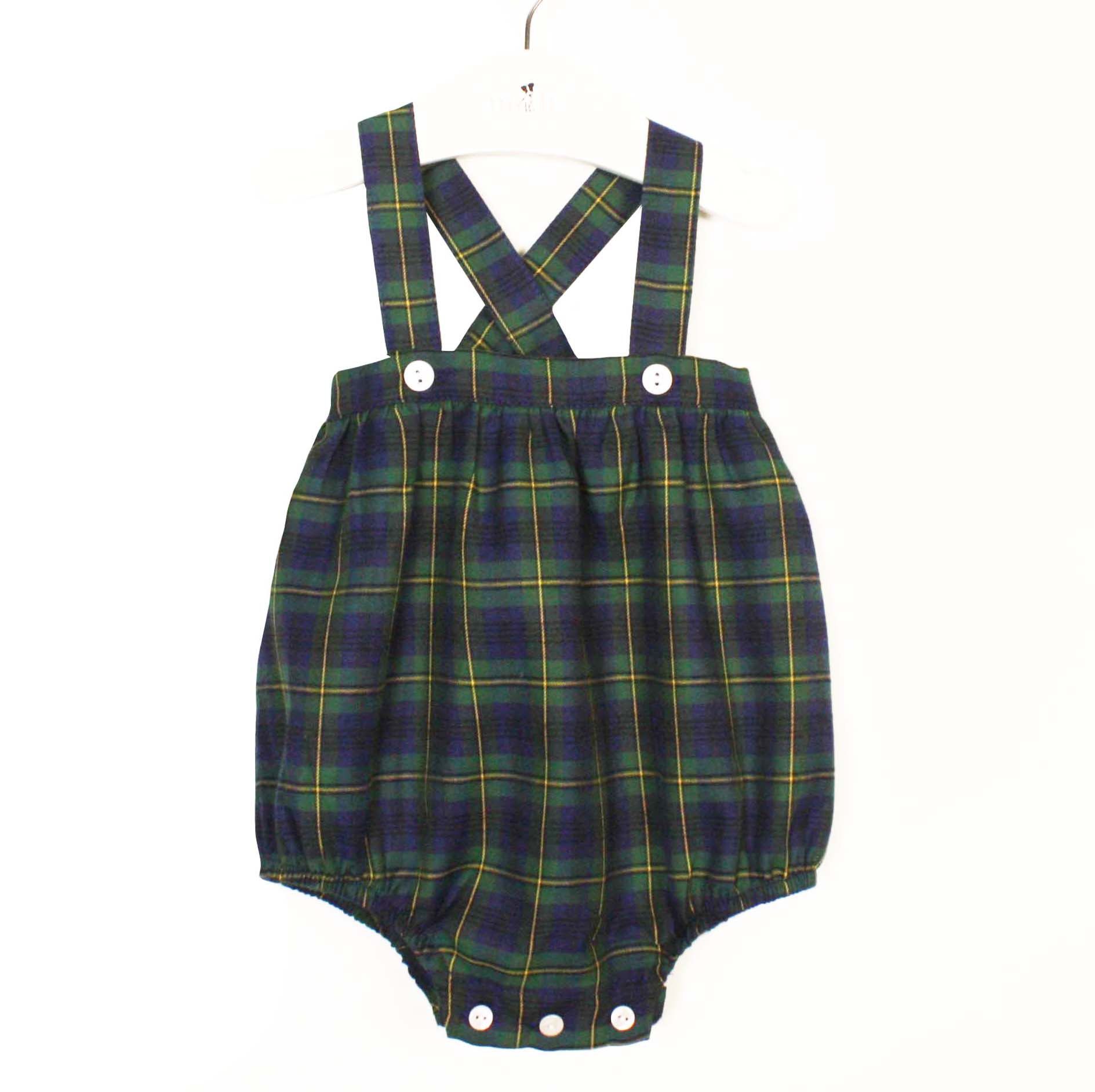baby romper in tartan print navy and green