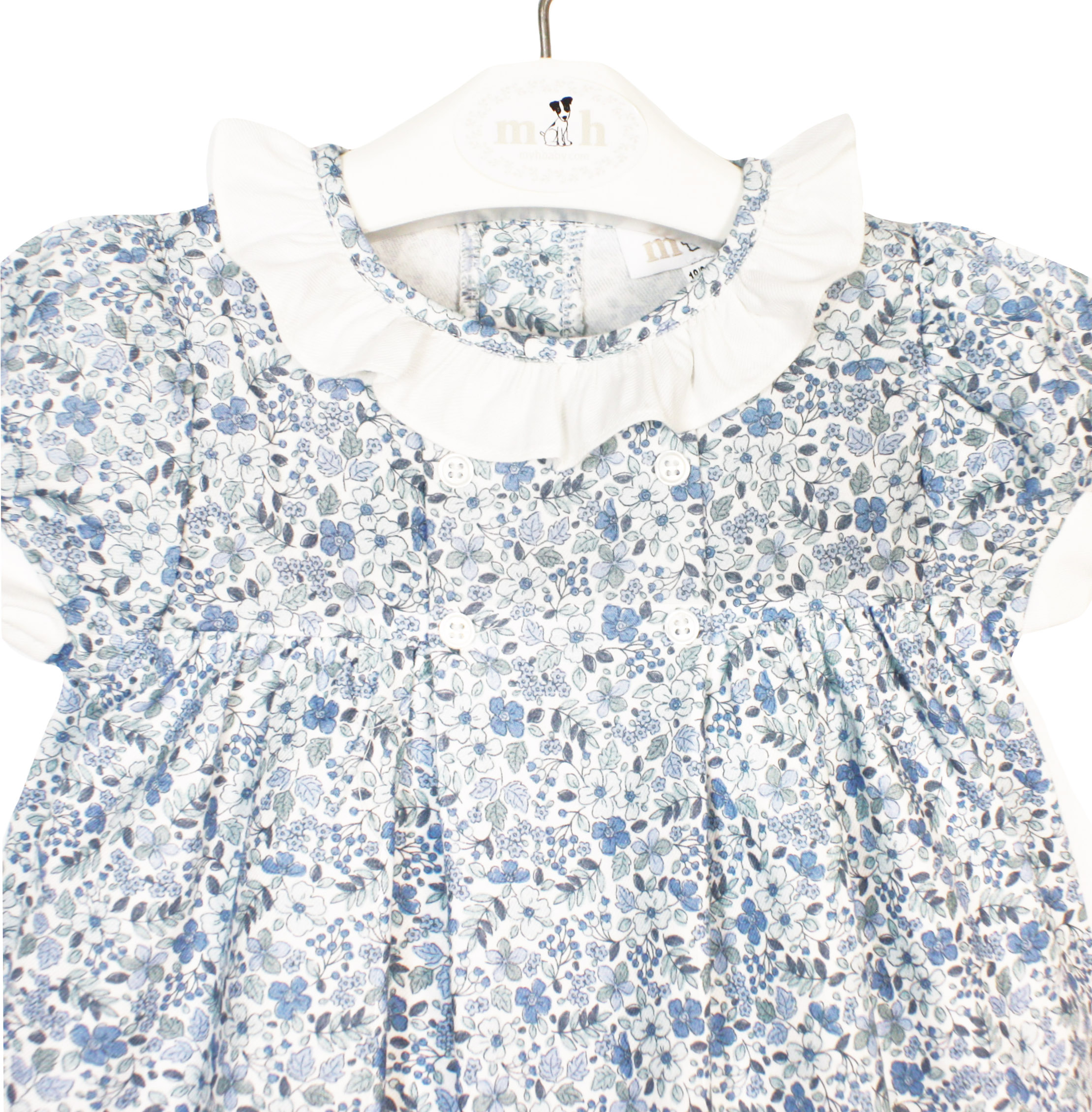 Paola fall dress in blue flowers print. Diaper cover up to 2Y. Made in Spain by m&h