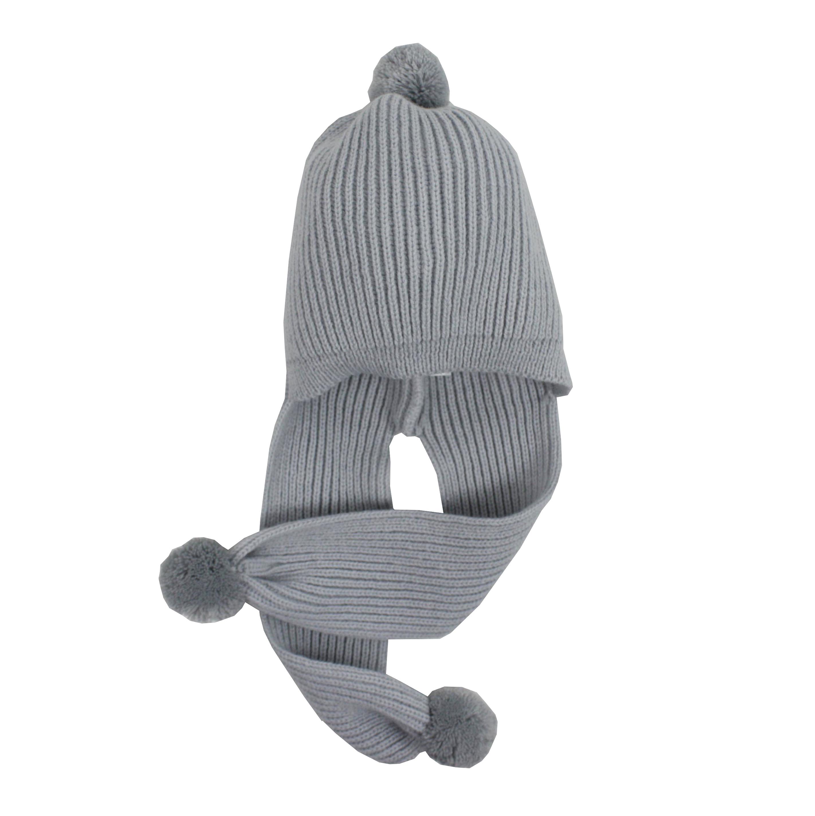 Knitted bonnet-scarf in grey with pom-pon. Made in Spain by m&h