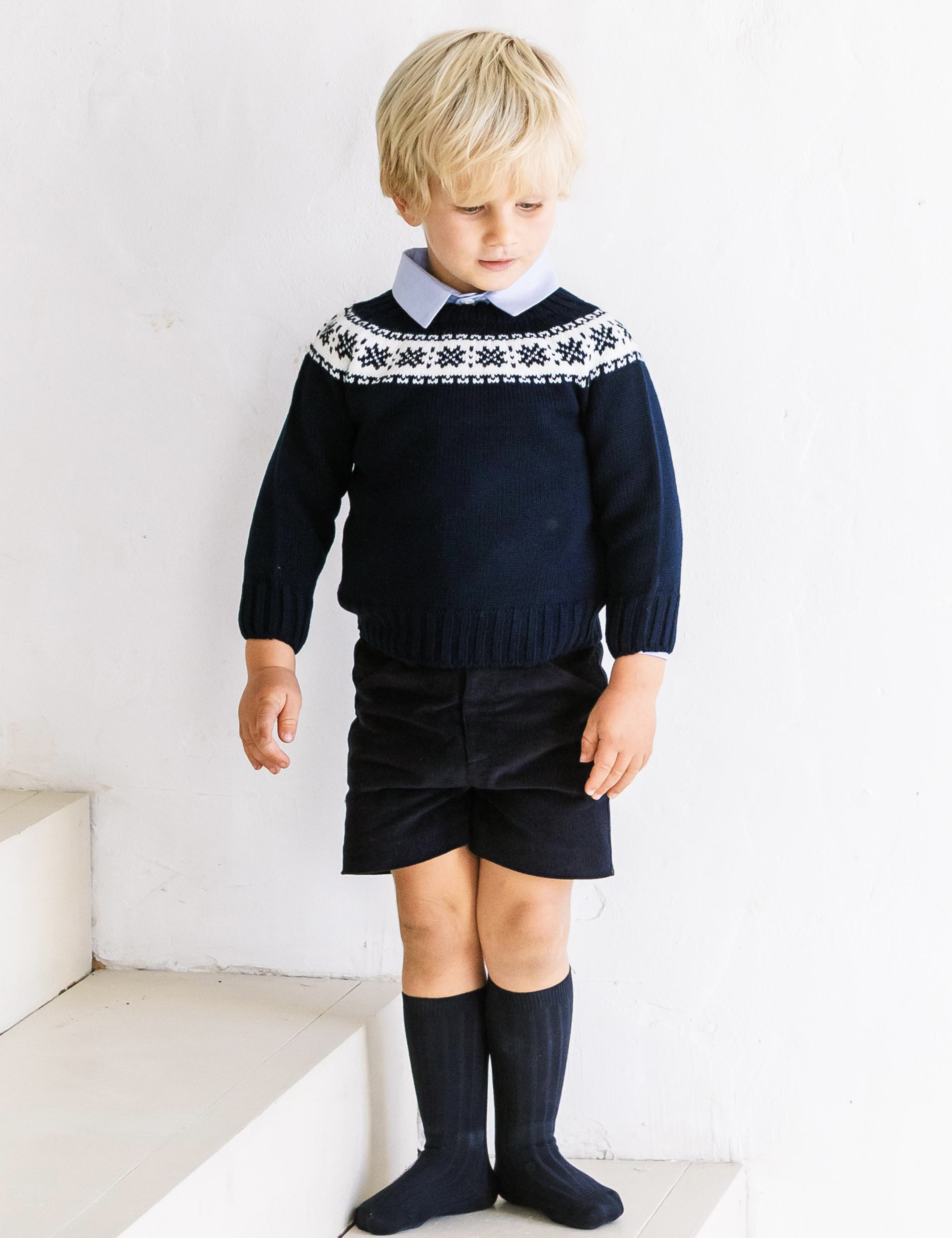 Navy blue knitted sweater with fretwork. Made in Spain by m&h