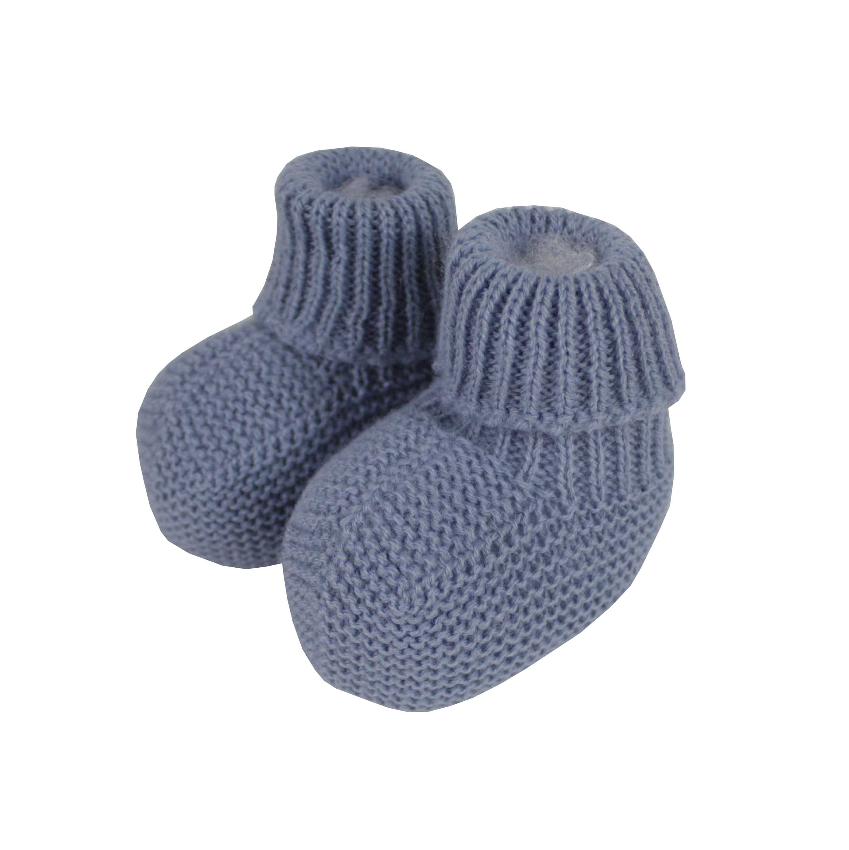 Medium blue knit baby shoe. Made in Spain by m&h