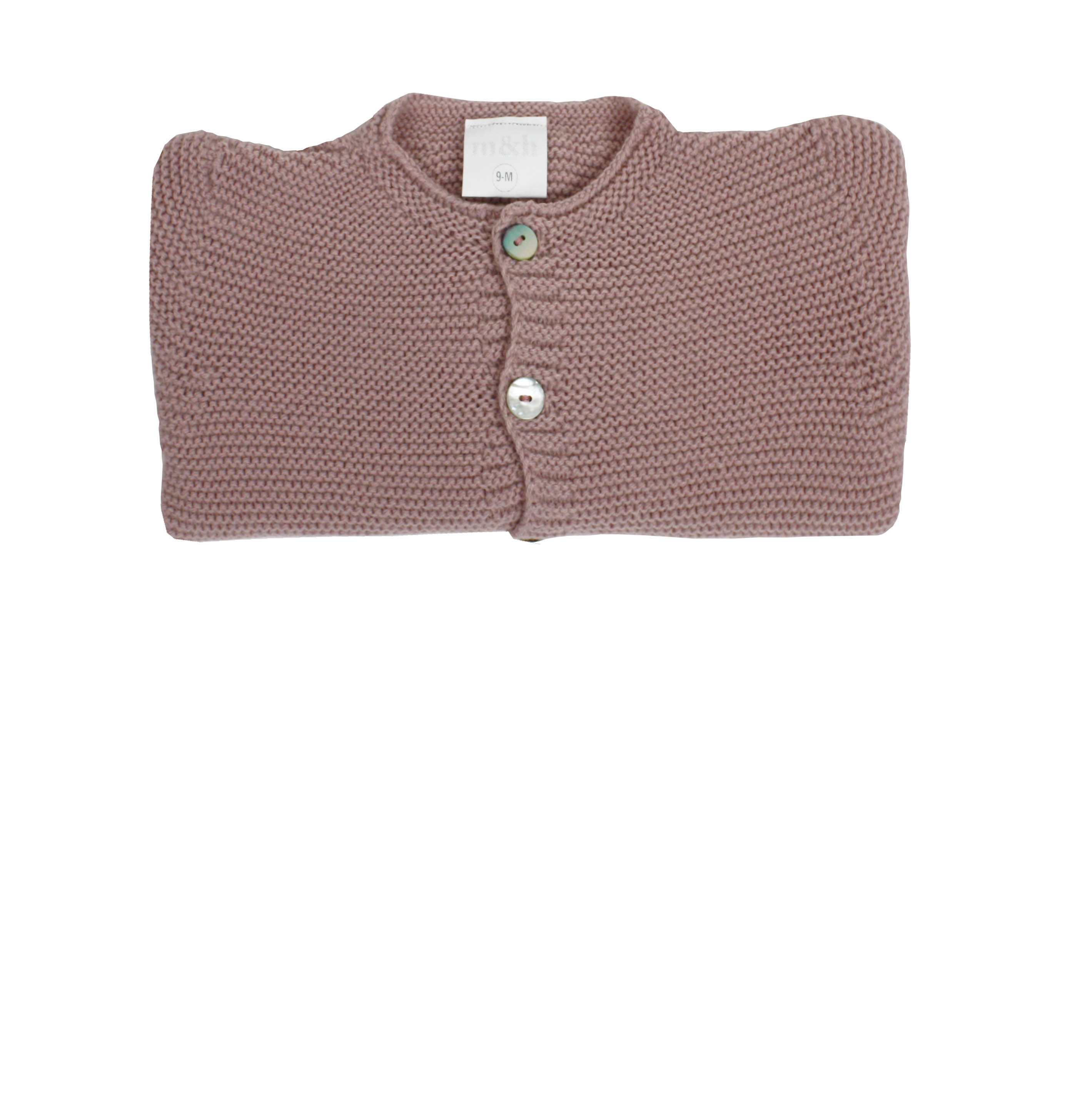 Long buttoned thick knit cardigan in pastel pink. Made in Spain by m&h