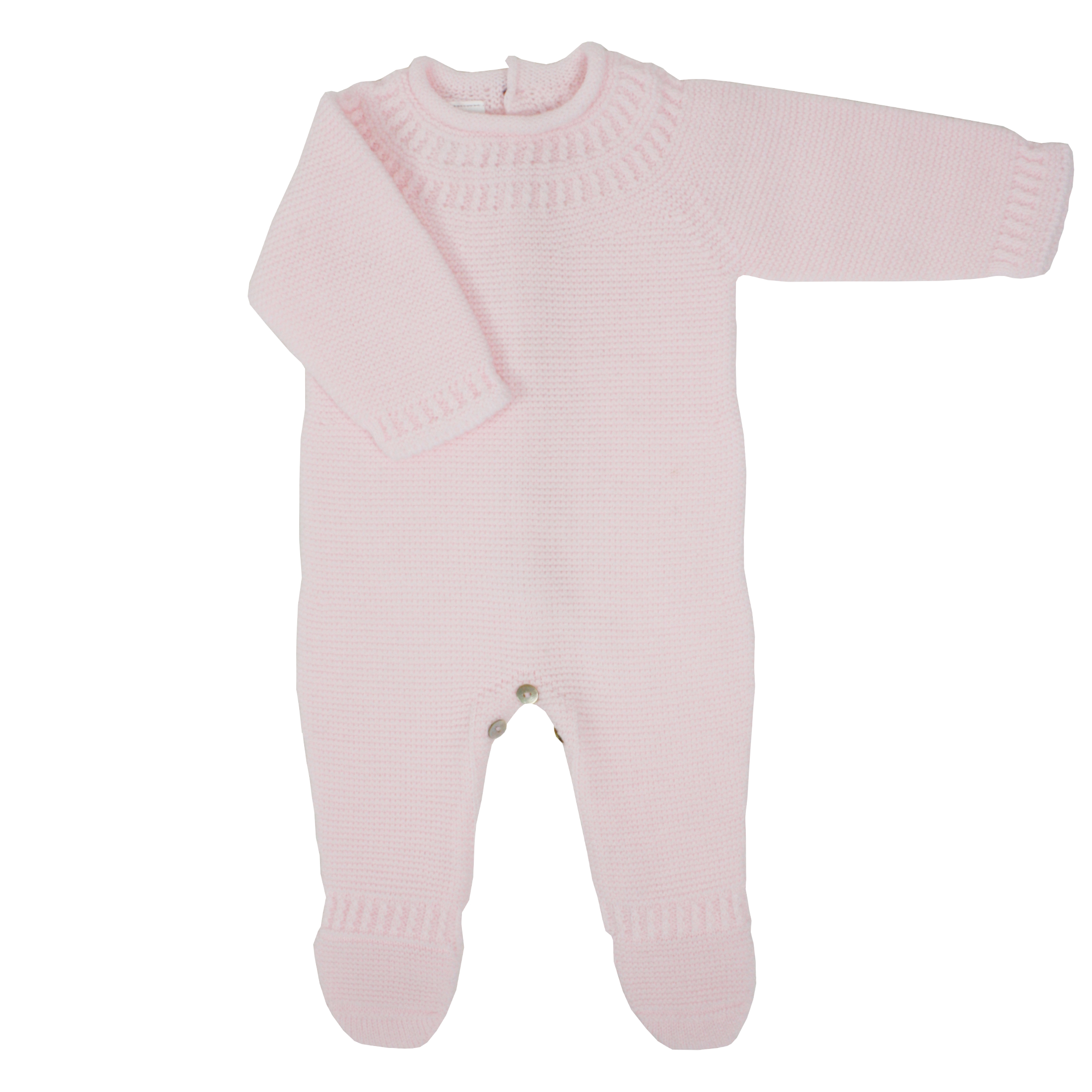 Baby pink knitted jumpsuit. Cable knit detail. Made in Spain by m&h
