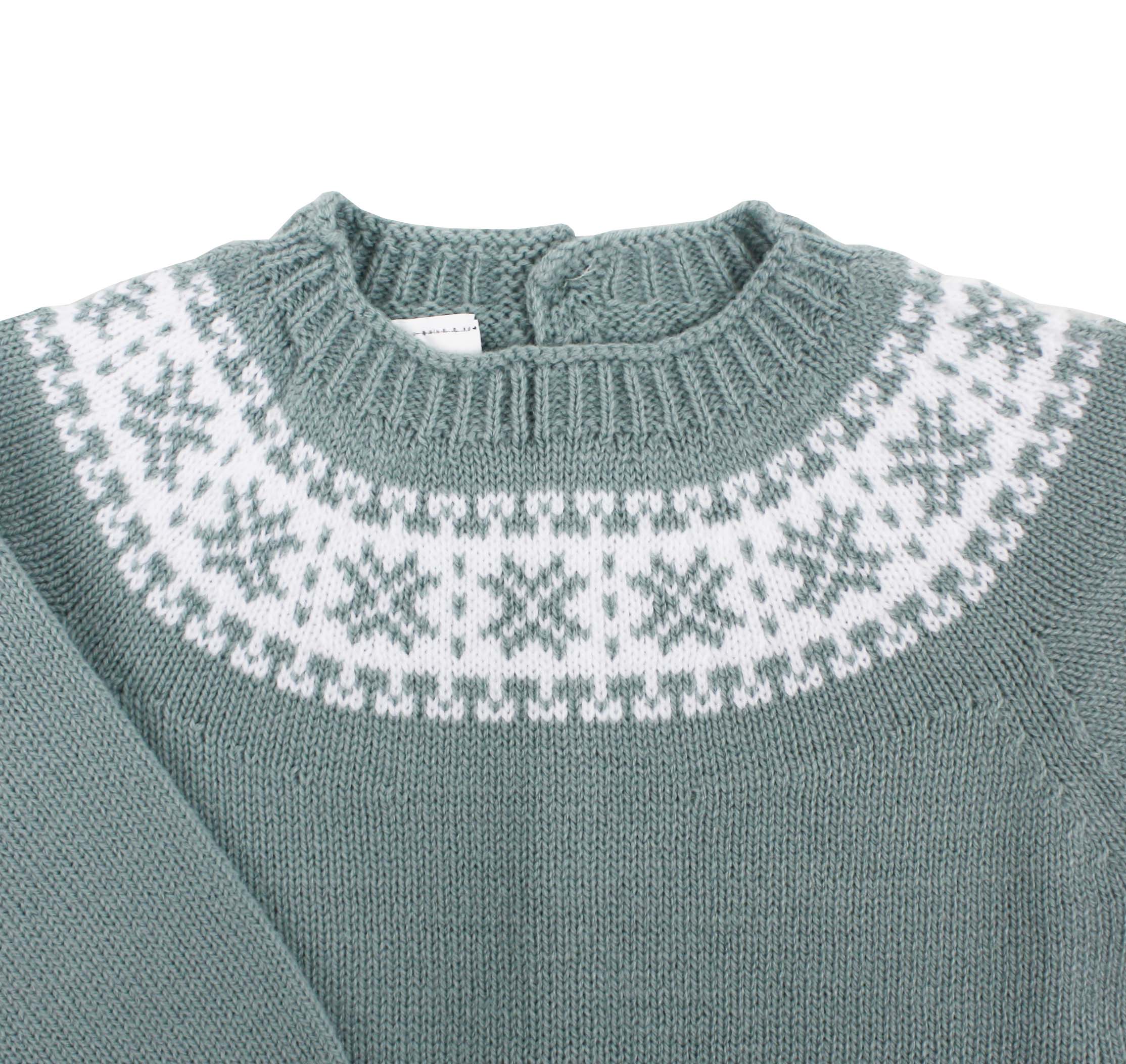 Aquarelle green knitted jumpsuit with fretwork. Made in Spain by m&h
