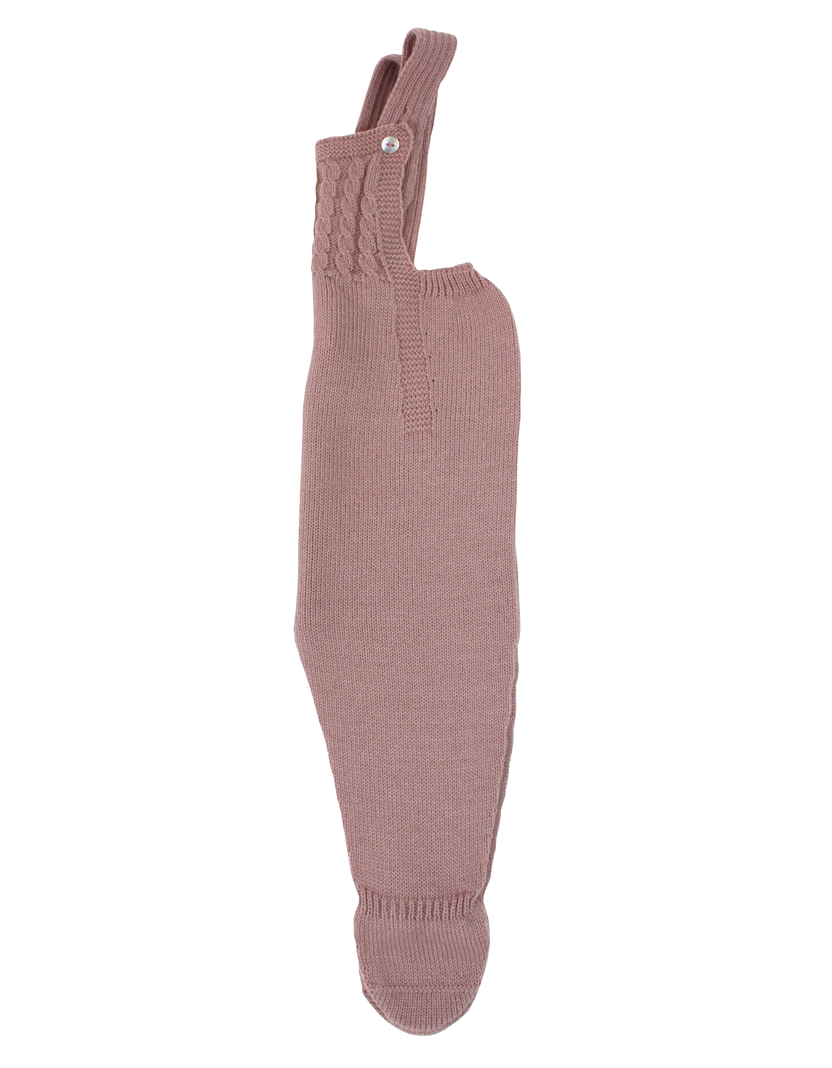 Pastel pink knit baby dungaree. Braces with button.Made in Spain by m&h