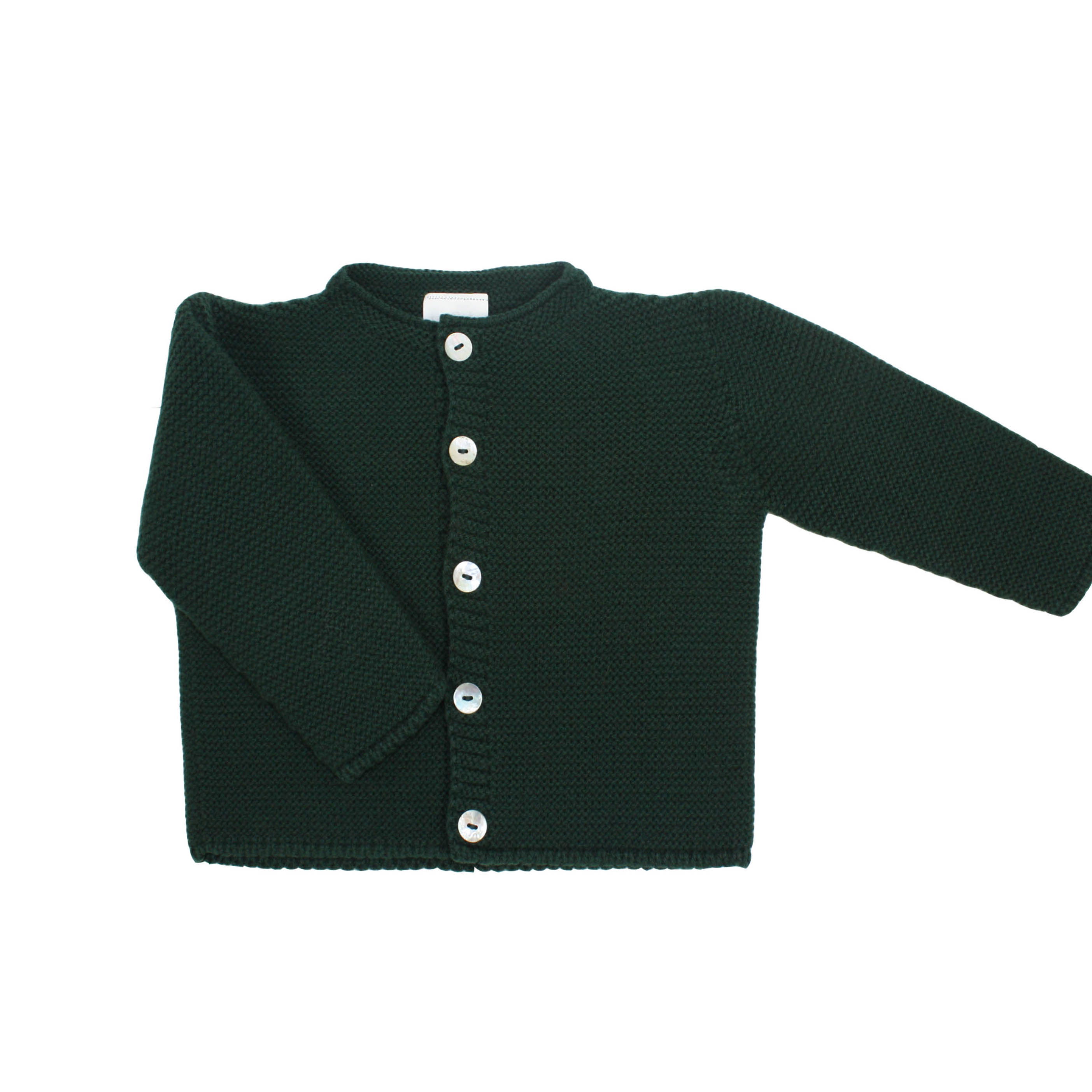 Long buttoned thick knit cardigan in dark green. Made in Spain by m&h