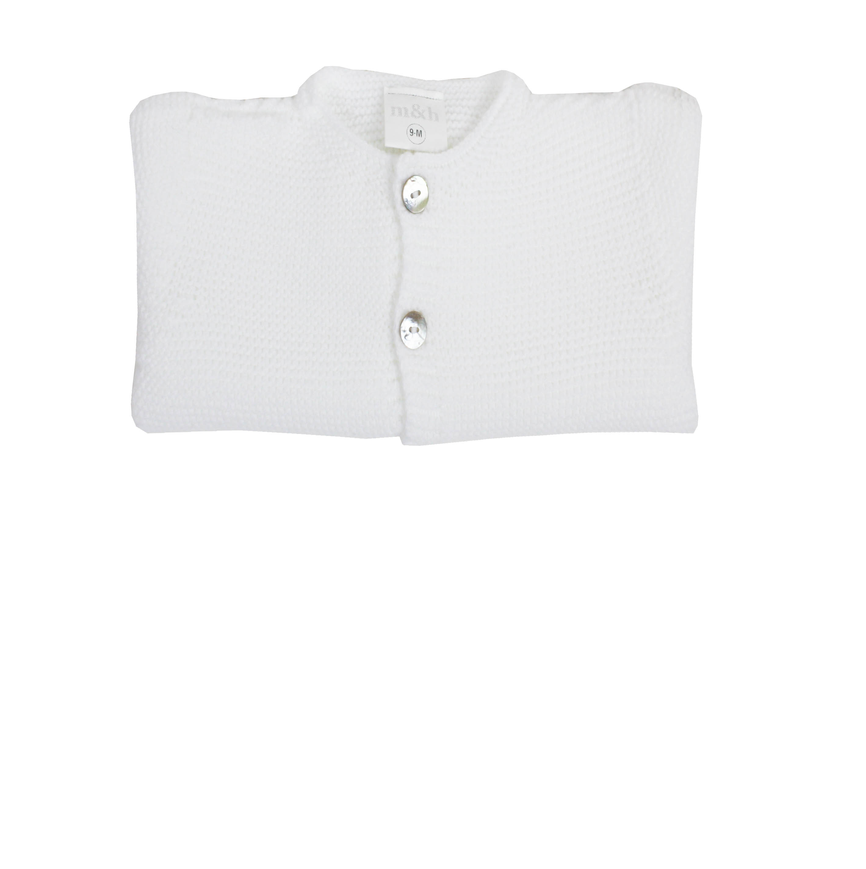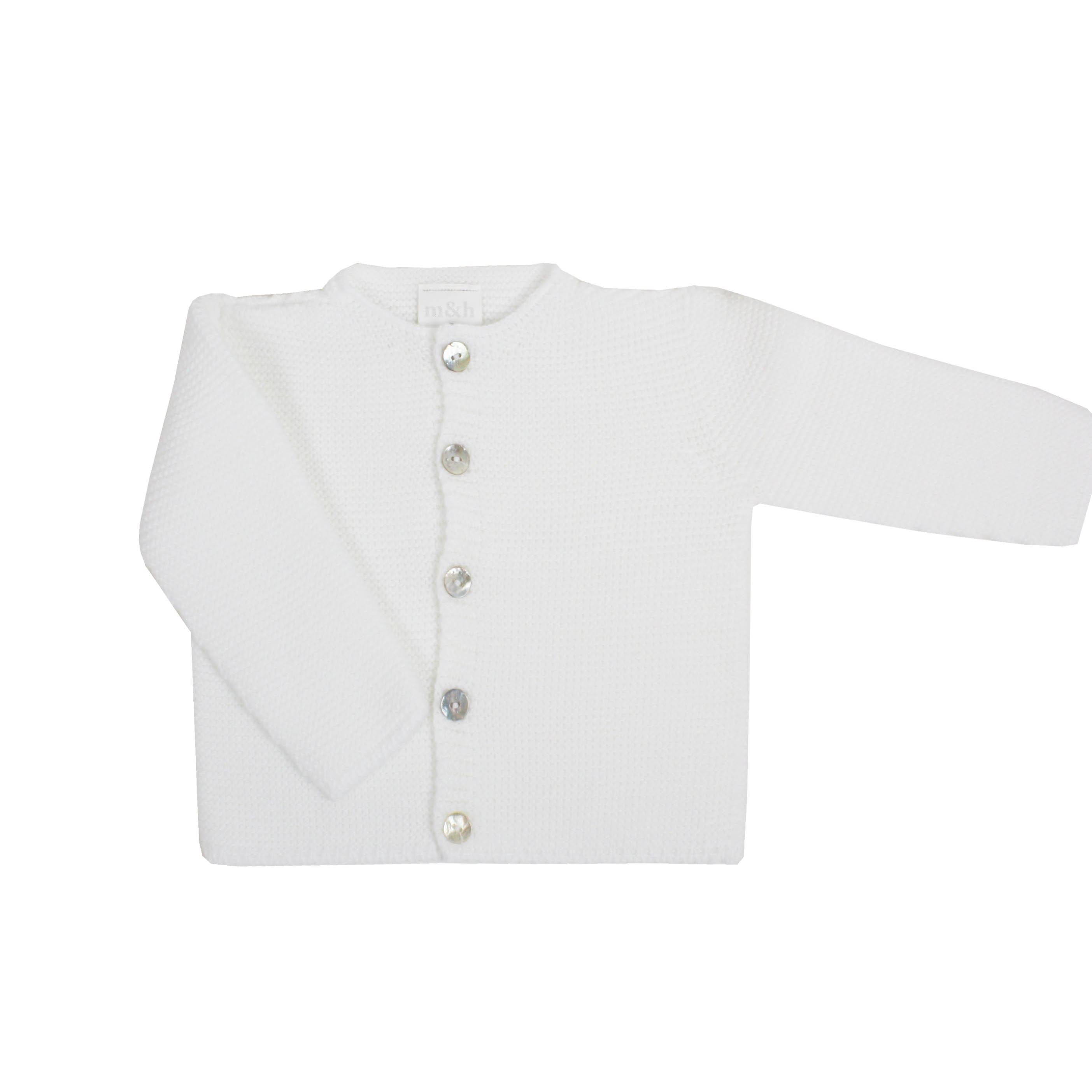 Long buttoned thick knit cardigan in white. Made in Spain by m&h