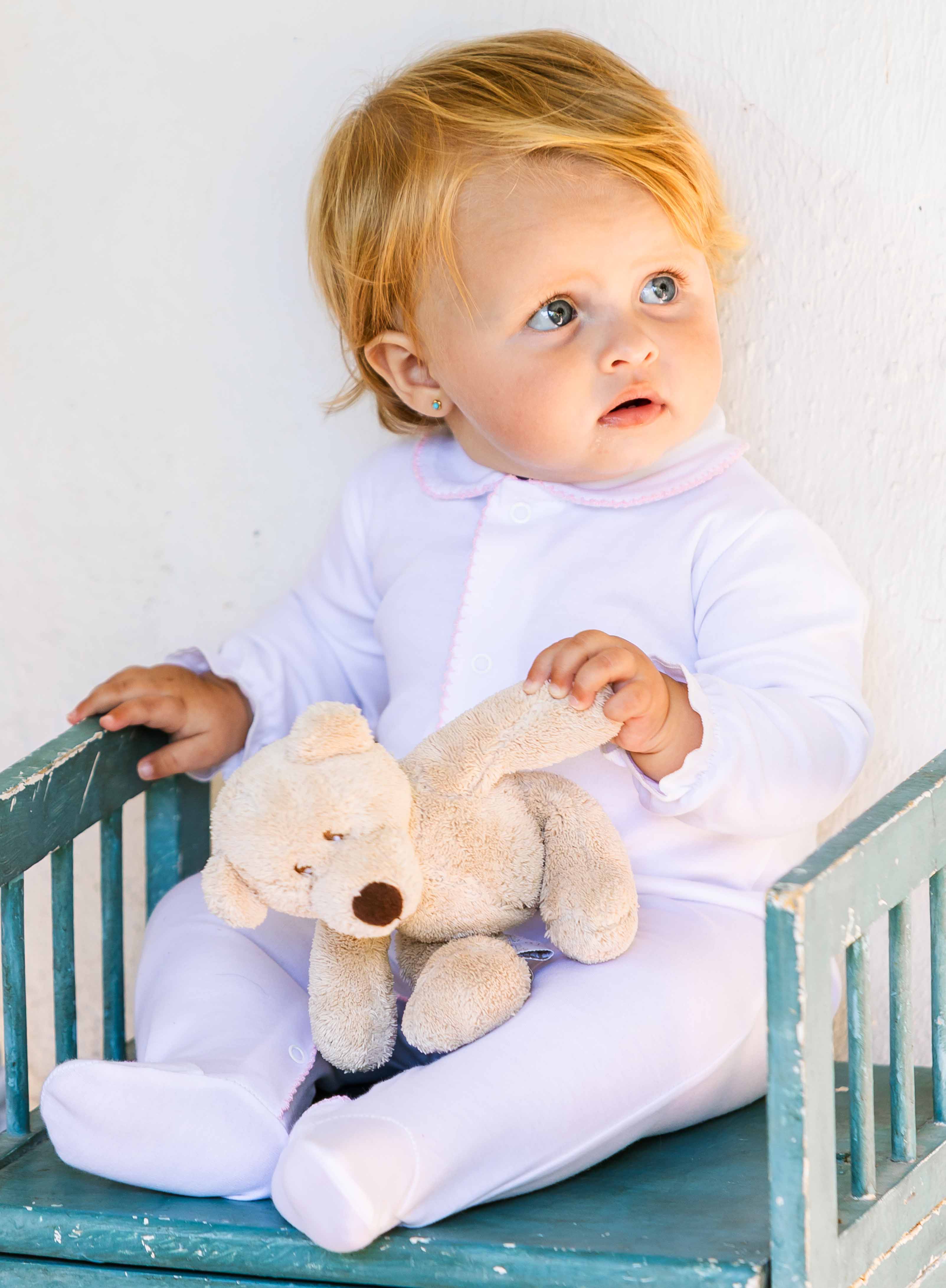 m&h long sleepsuit white and pink stitch