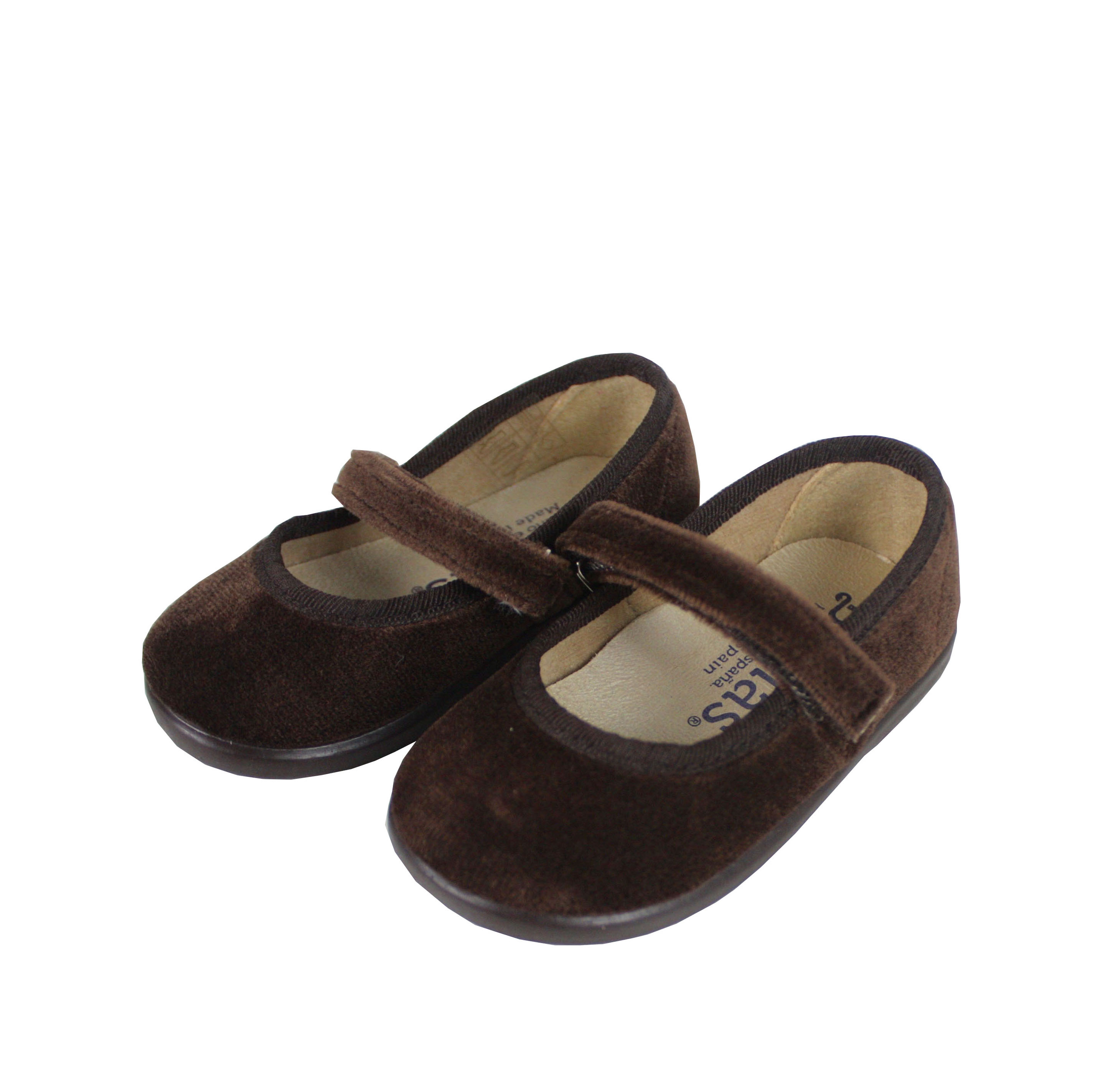 Mary Jane velvet shoes with velcro brown. Made in Spain by Batila