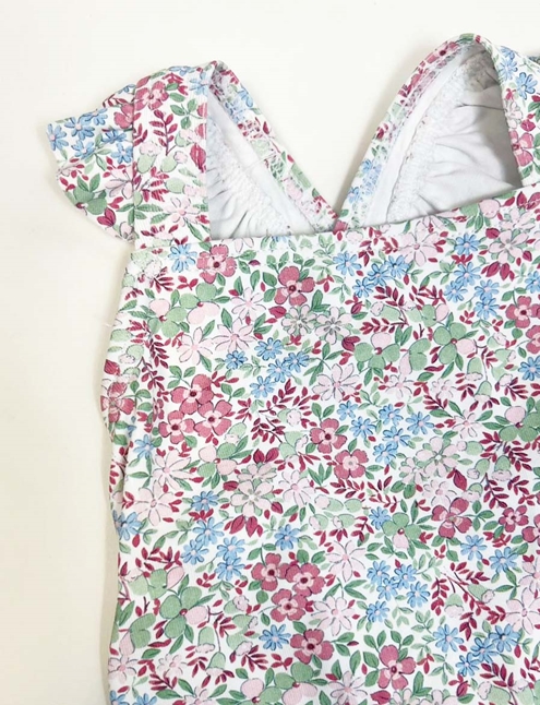 Bañador niña flores en tonos rosas y verdes. Hecho en España por m6h
