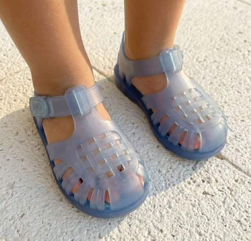 Cangrejera de goma en tono azul suela de goma y cierre con hebilla. Hecho en España por Igor